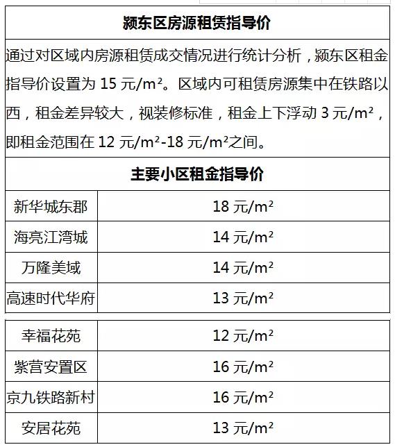 4月16日,阜阳市房地产管理局公布2018年第一季度阜阳市城区房屋租金指导价信息,具体如下: