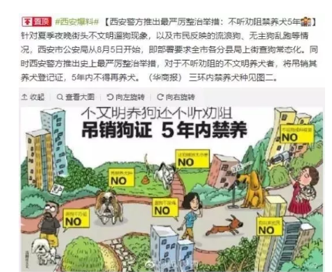 西安警方推出史上最严"禁狗令"