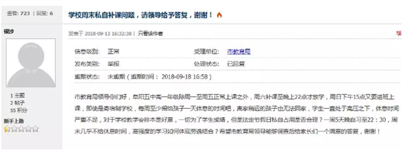 网名为@新手上路的市民向市教育局留言投诉: