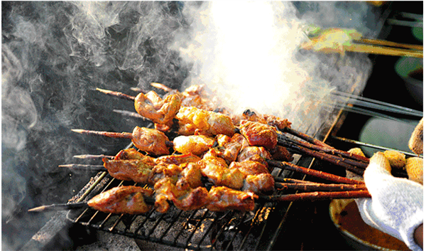 大家随身带点孜然粉,那就是移动的烤肉啊,见面打招呼的方式都是,见面咬一口,哇,你今天真好吃!