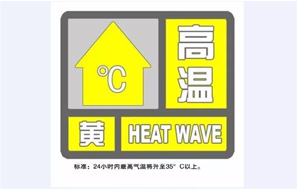 阜阳市气象台2018年06月12日07时30分发布高温黄色预警信号。未来三天阜城及三区最高气温将维持在35℃以上。提请做好防暑降温准备,高温时段尽量减少户外活动,注意防范因用电量过高、电力负载过大而引发的火灾等。