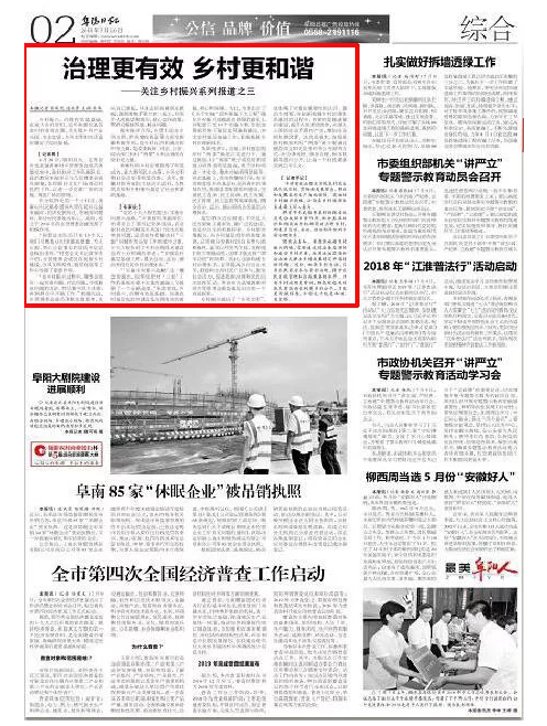 治理更有效 乡村更和谐乡村振兴,治理有效是基础。农业大市的阜阳,近年来强化基层农村的有效治理,为实现乡村产业兴旺、生态宜居、乡风文明和生活富裕奠定了良好基础。6月28日,骄阳似火。在界首市光武镇黄寨村