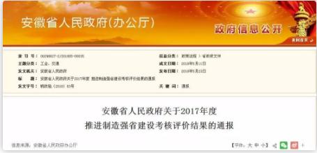 今天(5月25日),2018世界制造业大会和2018中国国际徽商大会将在合肥拉开帷幕。前天,安徽省人民政府公布了2017年度 推进制造强省建设考核评价结果的通报。 考核认定:肥西县等为全省制
