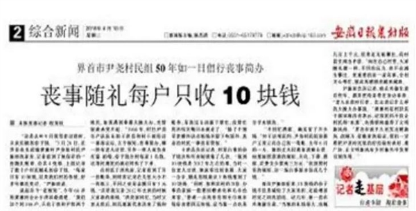 界首市尹尧村民组50年如一日倡行丧事简办丧事随礼每户只收10块钱“这是去年9月我母亲过世时,乡亲们随的份子钱。 ”3月28日,在界首市光武镇黄寨村尹尧组村民尹振雨的家里,记者看到了他保存的一份随礼账单