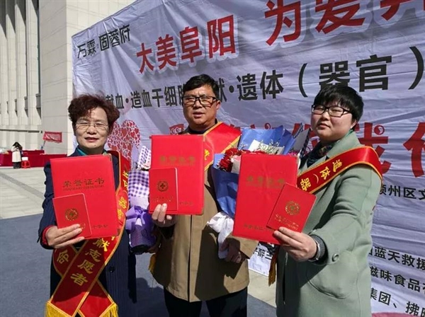 4月7日,在我市举办“大美阜阳,为爱奔跑”无偿献血、造血干细胞捐献、遗体(器官)捐献主题宣传活动上,对市环卫局职工李建举一家三口自愿捐献遗体(器官),用作医学研究和需要的患者的行为进行表彰。据悉,一家